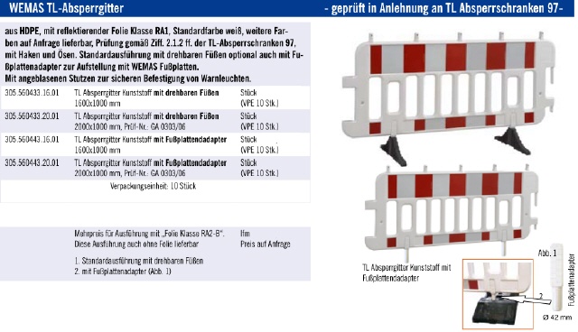 WEMAS TL-Absperrgitter - geprüft in Anlehnung an TL Absperrschranken 97-