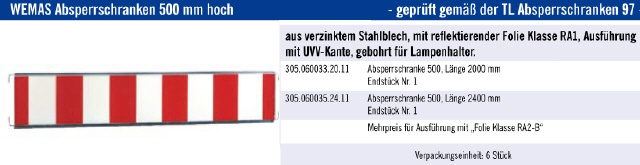 WEMAS Absperrschranken 500 mm hoch - geprüft gemäß der TL Absperrschranken 97 -