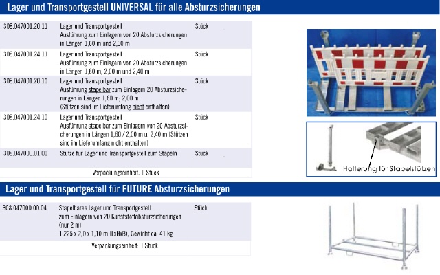 Lager und Transportgestell für FUTURE Absturzsicherungen