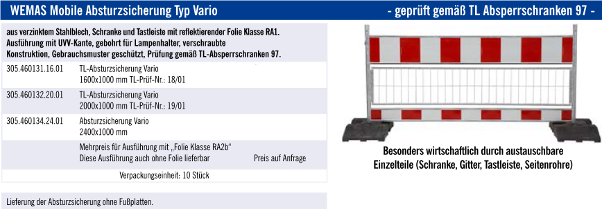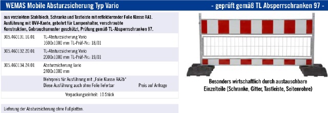 WEMAS Mobile Absturzsicherung Typ Vario - geprüft gemäß TL Absperrschranken 97 -