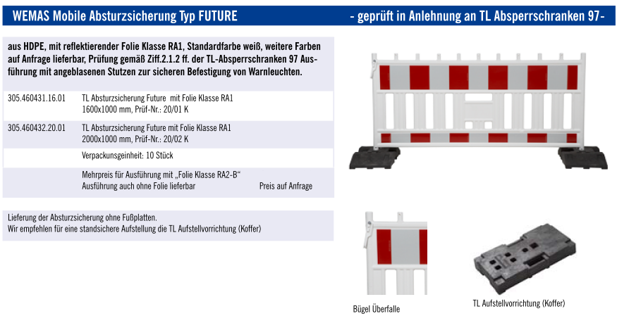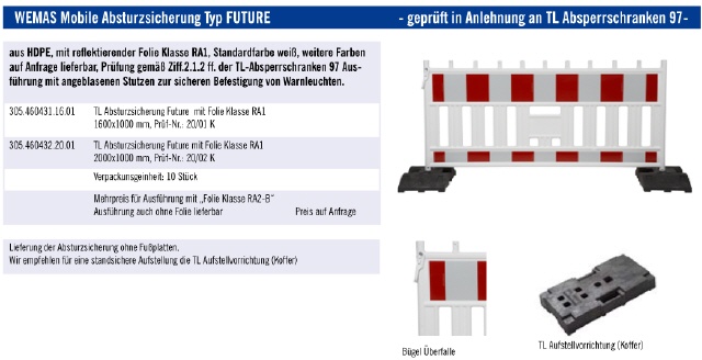 WEMAS Mobile Absturzsicherung Typ FUTURE - geprüft in Anlehnung an TL Absperrschranken 97-