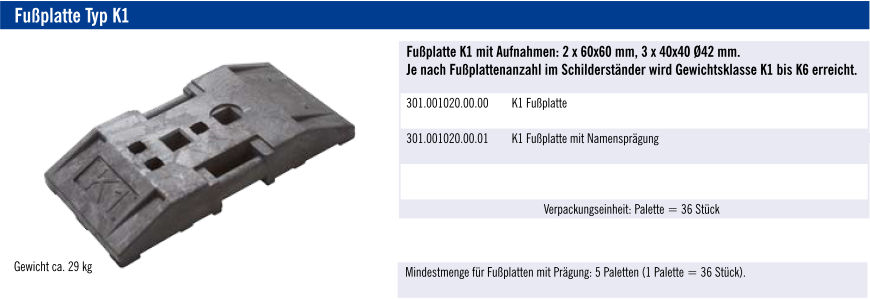 Je nach Fußplattenanzahl im Schilderständer wird Gewichtsklasse K1 bis K6 erreicht.