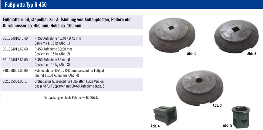 301.004011.60.60 R 450 Aufnahme 60x60 mm Gewicht ca. 15 kg (Abb. 2)