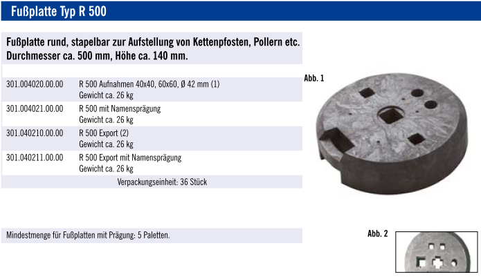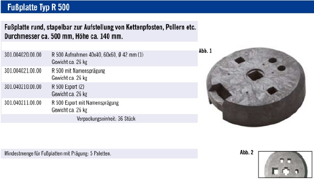 301.004021.00.00 R 500 mit Namensprägung Gewicht ca. 26 kg