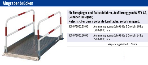 309.071000.15.00 Aluminiumgrabenbrücke Größe 1 Gewicht 30 kg 1700x1000 mm