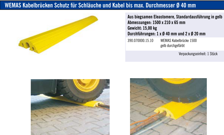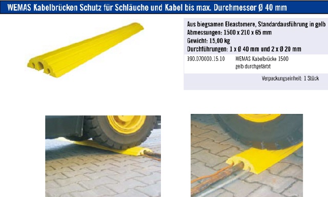 WEMAS Kabelbrücken Schutz für Schläuche und Kabel bis max. Durchmesser Ø 40 mm