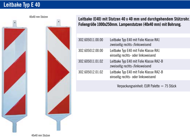302.605011.00.00 Leitbake Typ E40 mit Folie Klasse RA1 zweiseitig rechts-/linksweisend