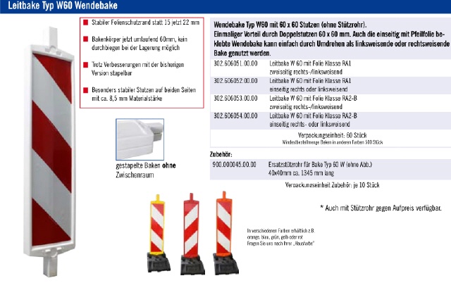 302.606054.00.00 Leitbake W 60 mit Folie Klasse RA2-B einseitig rechts- oder linksweisend