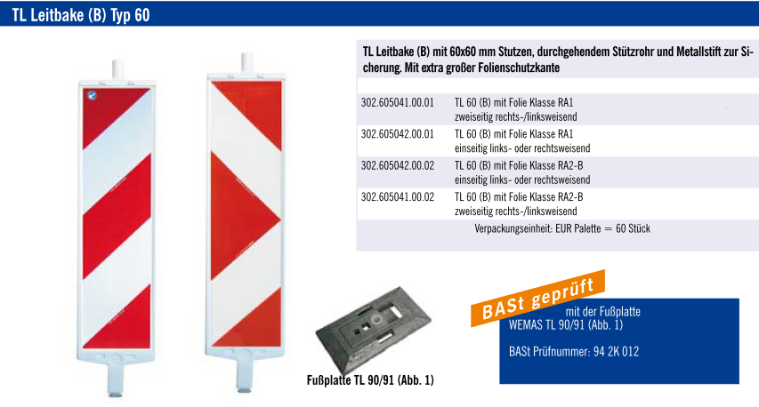 302.605042.00.01 TL 60 (B) mit Folie Klasse RA1 einseitig links- oder rechtsweisend