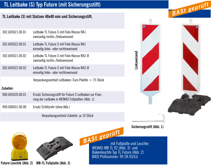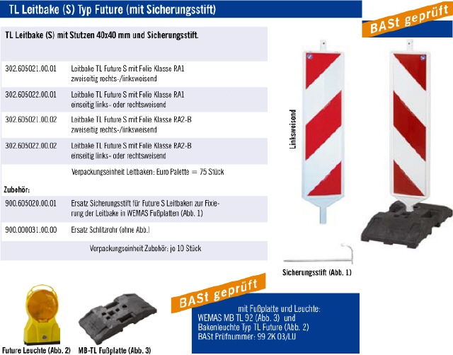 302.605022.00.02 Leitbake TL Future S mit Folie Klasse RA2-B einseitig links- oder rechtsweisend