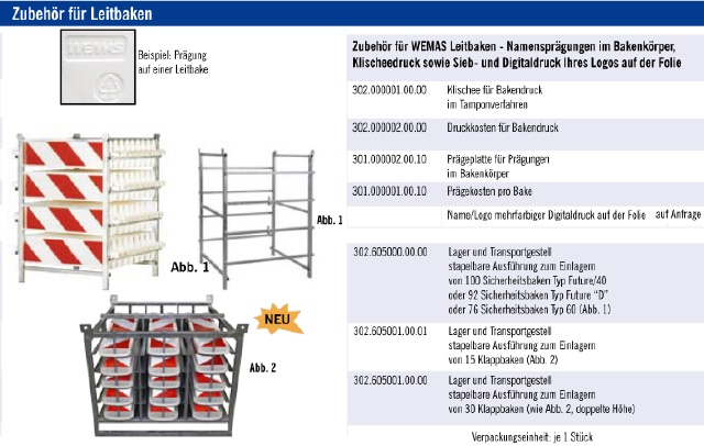 Zubehör für WEMAS Leitbaken - Namensprägungen im Bakenkörper, Klischeedruck sowie Sieb- und Digitaldruck Ihres Logos auf der Folie