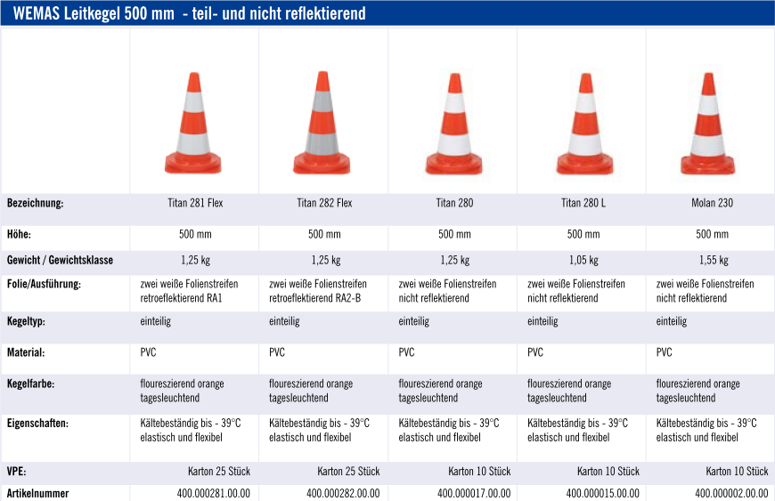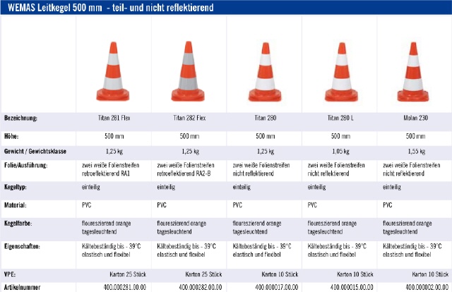 Leitkegel 500 mm - teil- und nicht reflektierend