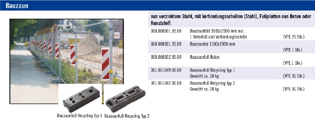 301.001049.00.00 Bauzaunfuß Recycling Typ 1 Gewicht ca. 28 kg