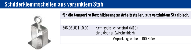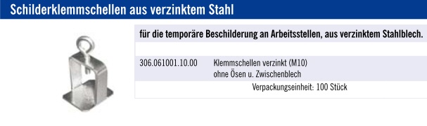 Schilderklemmschellen aus verzinktem Stahl für die temporäre Beschilderung an Arbeitsstellen, aus verzinktem Stahlblech.