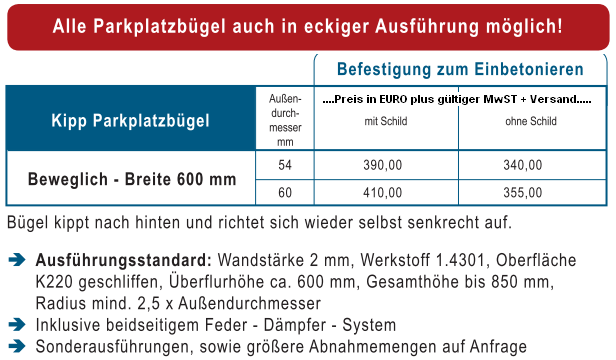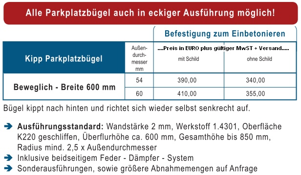 In oben aufgeführter Tabelle können Sie nach gewünschtem Außendurchmesser auswählen und erhalten so den Preis (ohne MwSt). Die Versandkosten müssen individuell ermittelt werden. Bitte schicken Sie Ihre Angebots-Anfrage mit Angabe von • Außendurchmesser • Angabe: mit / ohne Schild • gewünschte Menge • Versandort an: mailto:info@kramer-und-partner.de |