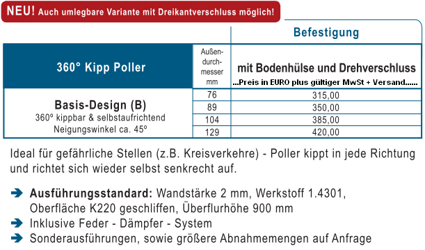In nachstehend aufgeführter Tabelle können Sie nach gewünschtem Außendurchmesser auswählen und erhalten so den Preis (ohne MwSt). Die Versandkosten müssen individuell ermittelt werden. Bitte schicken Sie Ihre Angebots-Anfrage mit Angabe von • Außendurchmesser • gewünschte Menge • Versandort an: mailto:info@kramer-und-partner.de |