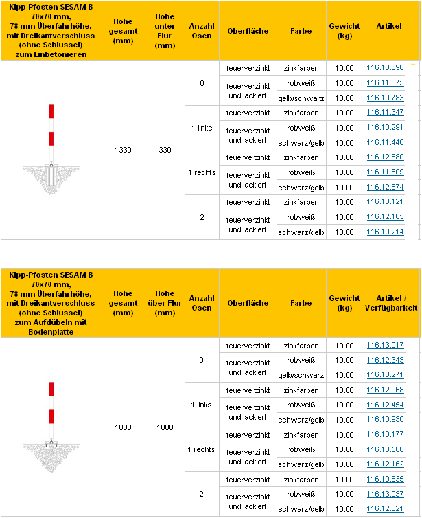 Der SESAM B Kipp-Pfosten mit Dreikantverschluss hat sich seit Jahrzehnten bewährt: