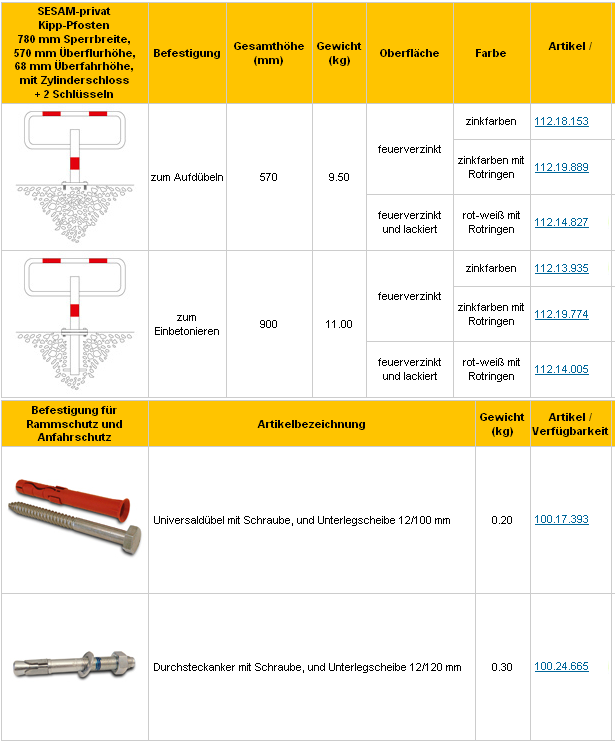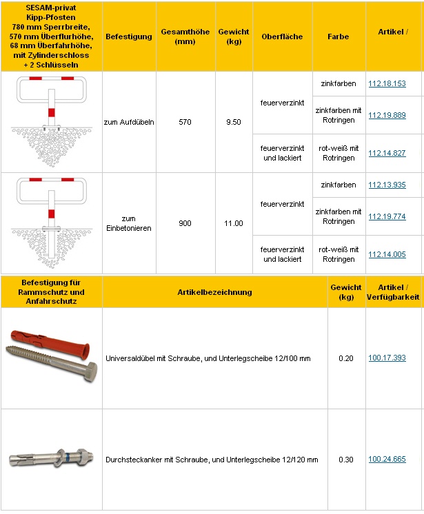 SESAM-privat Kipp-Pfosten