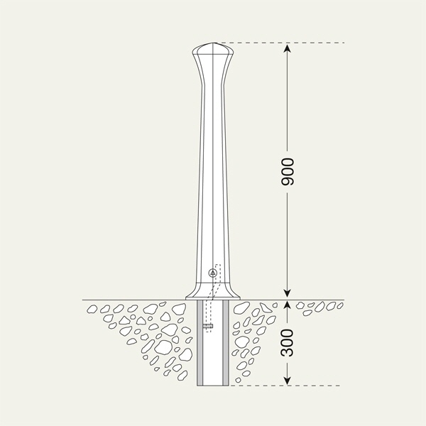 • Herausnehmbar (300 mm Unterflur) mittels Dreikantschlüssel (DIN 3223).