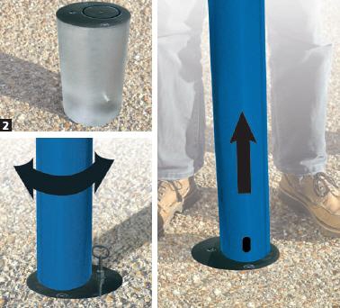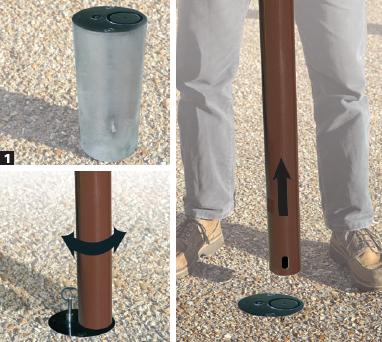 Mit diesem System lassen sich die Pfosten Ø 76 und Ø 114 herausnehmen.