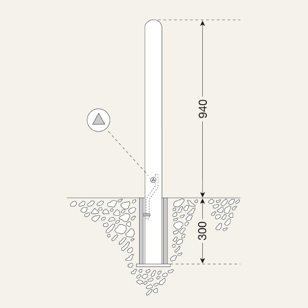 • Zum festen Einbau mit Erdanker ( 300 mm Unterflur)