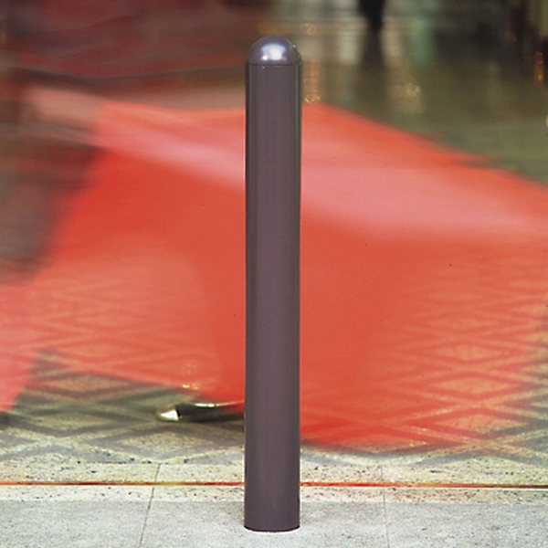 Ein runder Stahlpoller mit geformter Aluminiumkappe. Der Querschnitt ist harmonisch auf die Pollerhöhe abgestimmt.