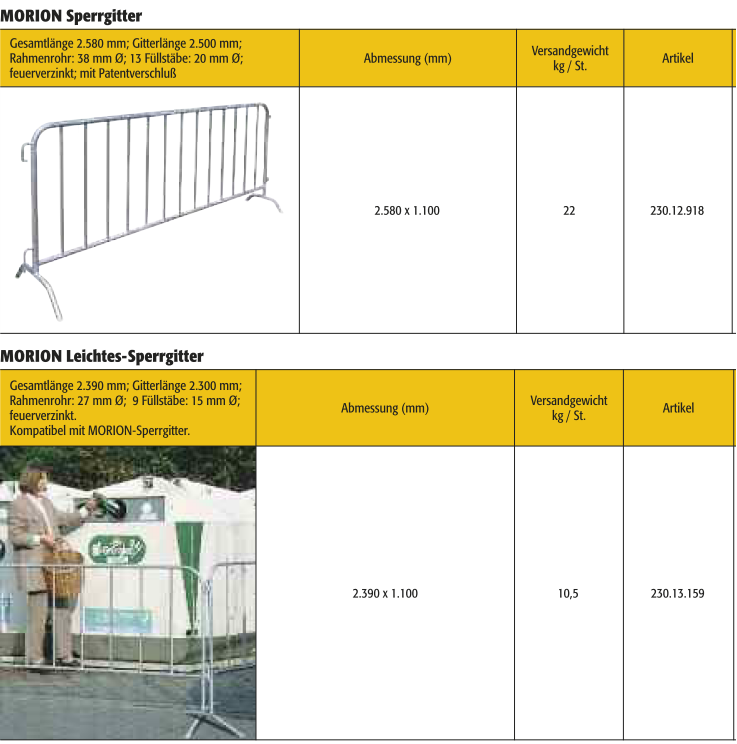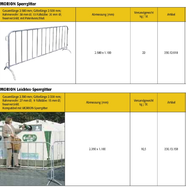 • Kombinierbar mit MORION Leichtes-Sperrgitter.