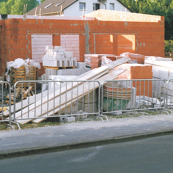 Die Absperrgitter werden durch Patentverschluss miteinander verbunden.
