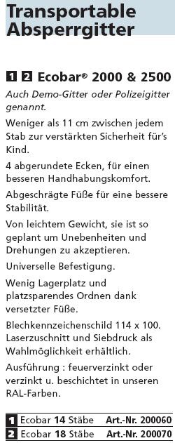 Sie sind hier: Startseite » • Strassenausstattung » • Straßenausstattung » Absperrgitter Transportable Absperrgitter Auch Demo-Gitter oder Polizeigitter genannt. LINK: zur Seite mit RAL-Farben-Muster Der Preis ändert sich bei Auswahl des Artikels! Aktion war erfolgreich Das hat leider nicht geklappt. Warenkorb anzeigen <<< --- Zur Kasse gehen ------- Weiter einkaufen Welche Artikelnumer?: 200060 Lg 2000 Fvz 200061 Lg 2000 RAL 200070 Lg 2500 Fvz 200071 Lg 2500 RAL Anzahl: St In den Warenkorb Auf den Merkzettel 200060 200061 200070 200071