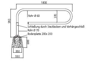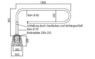 Schließung durch gelieferten Steckbolzen Ø 16 und Vorhängeschloß.