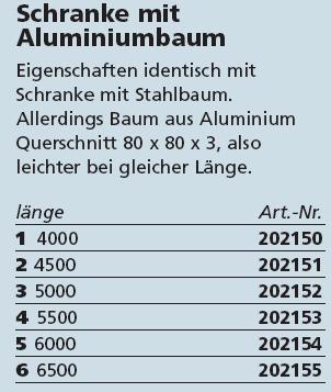 Schranke mit Aluminiumbaum Eigenschaften identisch mit Schranke mit Stahlbaum.