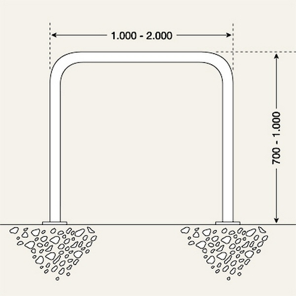 Als gestalterisches Element auf Plätzen und Fußgängerzonen. Kräftiges Edelstahlrohr mit 60 mm Durchmesser für dauerhaften Einsatz und hoher Formstabilität. Deutlich sichtbar durch 1.000 mm Überflurhöhe. Mit zusätzlichem Knieholm lieferbar.