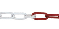 Gliederstärke 5 mm, langgliedrig, geschweißt, feuerverzinkt, kunststoffbeschichtet rot/weiß, (Farbwechsel alle 50cm), Bestellkürzel: Stahlkette