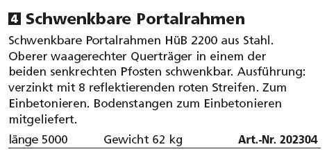 Sie sind hier: Startseite » • Strassenausstattung » • Straßenausstattung » Portalrahmen Schwenkbare Portalrahmen Schwenkbarer Portalrahmen Der Preis ändert sich bei Auswahl des Artikels! Aktion war erfolgreich Das hat leider nicht geklappt. Warenkorb anzeigen <<< --- Zur Kasse gehen ------- Weiter einkaufen Artikel-Nr.: pro-202304 Lieferbar in 1-3 Wochen... genaue Angabe bei Angebotsanforderung! 606,90 EUR Preis enthält 19% USt. - plus ggf. Versandkosten siehe Versand / Widerrufsrecht...Fragen zum Produkt?...Tel. 05671 2549 Versand-Gewichtsklasse: 62 kg Anzahl: St In den Warenkorb Auf den Merkzettel 202304