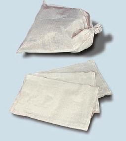 Weißer Gewebesack aus Polypropylen, hält bis zu 20 Kg Sand.
