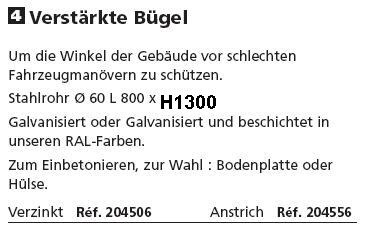 Sie sind hier: Startseite » • Strassenausstattung » • Straßenausstattung » Sicherheit für Innen und Außen Verstärkte Bügel Um die Winkel der Gebäude vor schlechten Fahrzeugmanövern zu schützen. LINK: zur Seite mit RAL-Farben-Muster Der Preis ändert sich bei Auswahl des Artikels! Aktion war erfolgreich Das hat leider nicht geklappt. Warenkorb anzeigen <<< --- Zur Kasse gehen ------- Weiter einkaufen Welche Artikelnumer?: 204506 verzinkt 204556 Anstrich RAL-Farben Anzahl: St In den Warenkorb Auf den Merkzettel 204506 204556