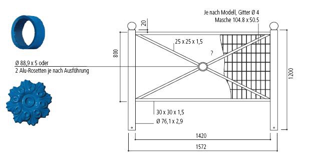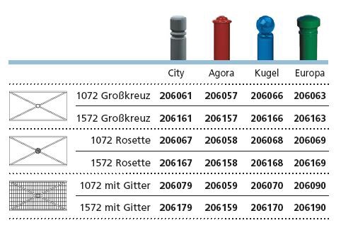 • drei Rahmen: Großkreuz, Rosetteoder Gitter