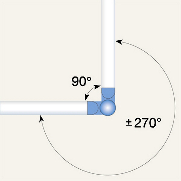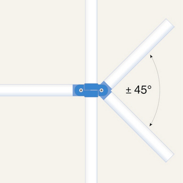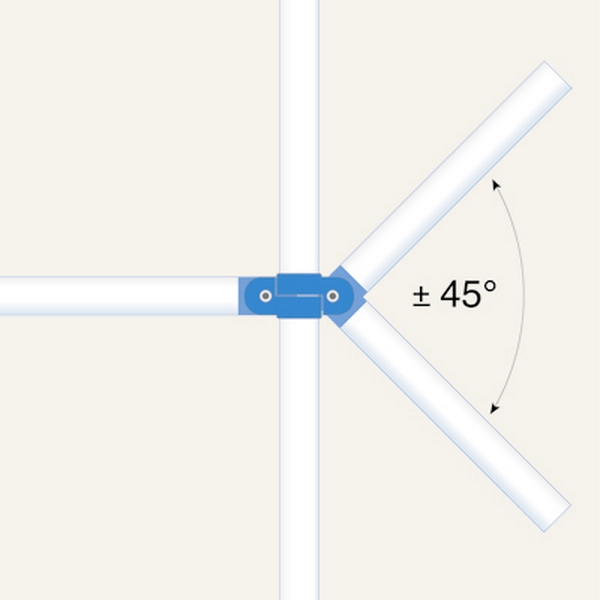 • Beliebige horizontale Winkel über 90° und vertikale Winkel (Steifungen) bis 45° einstellbar.