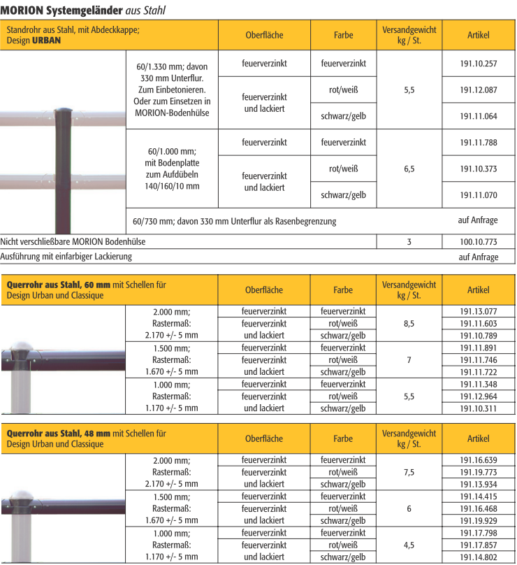 Merkmale der MORION Systemgeländer URBAN