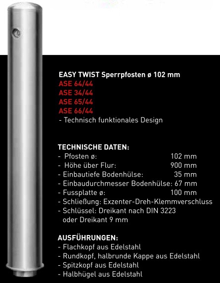 URBANUS - EASY TWIST • Die neue Kombination Sperrpfosten-Bodenhülse • Bestens geeignet als Speziallösung zur Absturzsicherung an Treppen und anderen Abgängen. • Sicherung von Parkplätzen und Verkehrsräumen - auch in Parkhäusern einfach möglich. • Die Lösung zur Sicherung von Fahrtreppen gem. EN 115. • Einfaches Herausnehmen aus Bodenhülsen durch neuartigen Exzenter Dreh-Klemm-Verschluss. • Ideal geeignet für anspruchsvolle Untergründe, z.B. Beton, Marmor, Metall! _______________________________________________________________ LINK: zum DOWNLOAD Anleitung [589 KB] LINK: zum DOWNLOAD Produktblatt [330 KB] |