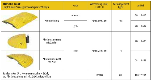 TOPSTOP Fahrbahnschwelle aus Recycling < 20 kmh