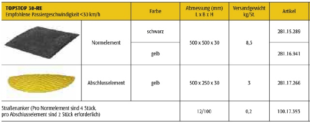 TOPSTOP Fahrbahnschwelle aus Recycling < 30 kmh
