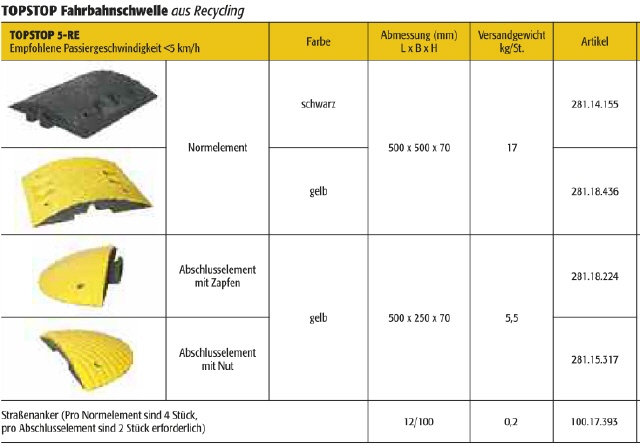 Richtgeschwindigkeiten der TOPSTOP Fahrbahnschwellen aus Recycling