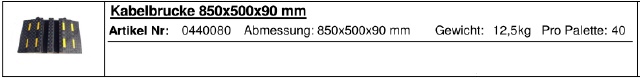 Sie sind hier: Startseite » • Verkehrsberuhigung » Kabelbrücken / Schlauchbrücke / Bordstein-R. Kabelbrücke 850x500x90 mm Kabelbrücke 850x500x90 mmArt.-Nr. 0440080 Aktion war erfolgreich Das hat leider nicht geklappt. Warenkorb anzeigen <<< --- Zur Kasse gehen ------- Weiter einkaufen Artikel-Nr.: int-0440080 Lieferbar in 1-3 Wochen... genaue Angabe bei Angebotsanforderung! 79,68 EUR Preis enthält 19% USt. - plus ggf. Versandkosten siehe Versand / Widerrufsrecht...Fragen zum Produkt?...Tel. 05671 2549 Versand-Gewichtsklasse: 999 kg Anzahl: St In den Warenkorb Auf den Merkzettel
