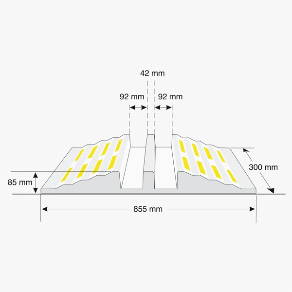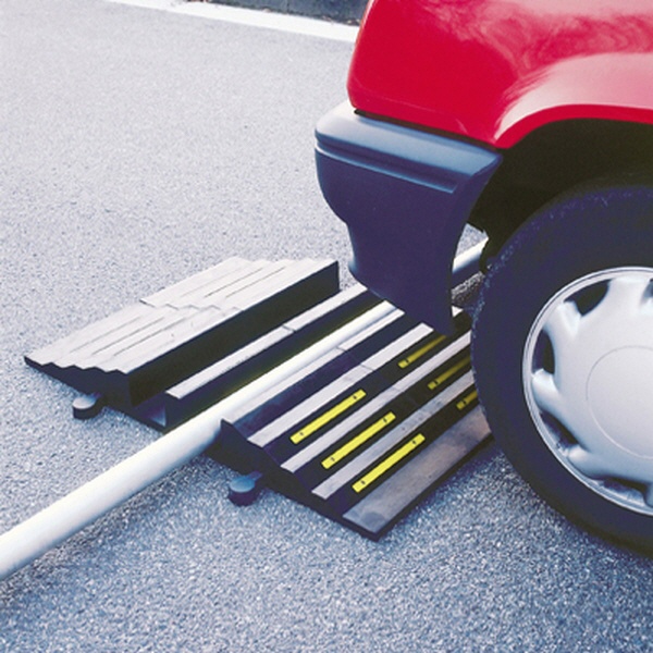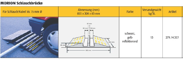 Mit der MORION Schlauchbrücke können Schläuche, Rohren und Kabel bis 75 mm Ø, die quer über die Fahrbahn verlegt wurden, sicher überfahren werden.