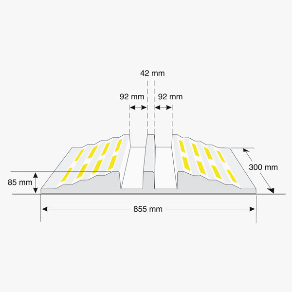 • Überfahrhöhe 85 mm, extra flach angerampt.