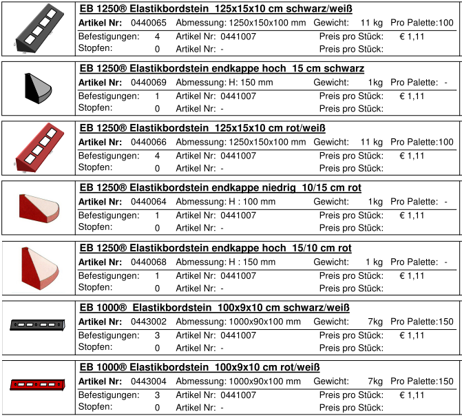 Artikel-Nr.: 0443002 = Elastikbordstein 100x9x10 cm schwarz/weiß