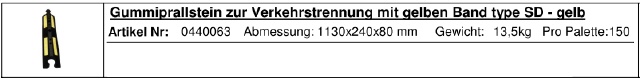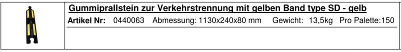 Gummiprallstein zur Verkehrstrennung mit gelben Band type SD - gelb