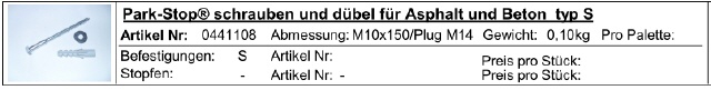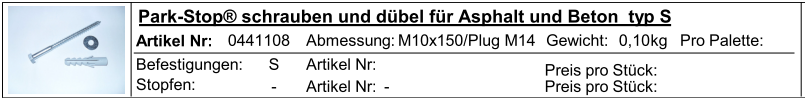 Park-Stop® Schrauben und Dübel für Asphalt und Beton Typ S