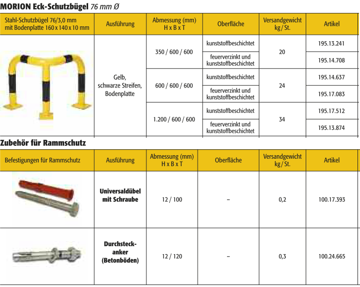 Beugen wirkungsvoll Anfahrschäden vor, sichern Inventar, Verkehrswege und Arbeitsbereiche.